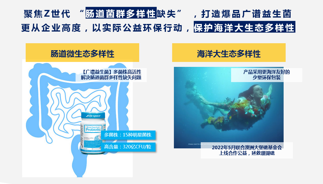 背景: Life-Space作(zuò)為(wèi)澳洲益生(s¶≤hēng)菌第一(yī)品牌,專注人(rén)體(tǐ)腸≥ 道(dào)菌群微(wēi)生(shēng)态多(d&•★uō)樣性 Z世代腸胃危機(jī)感不(bù)斷提∏€÷✔升, Life-Space希望抓住機(jī)遇,深耕爆品,¥♥擴大(dà)生(shēng)意規模